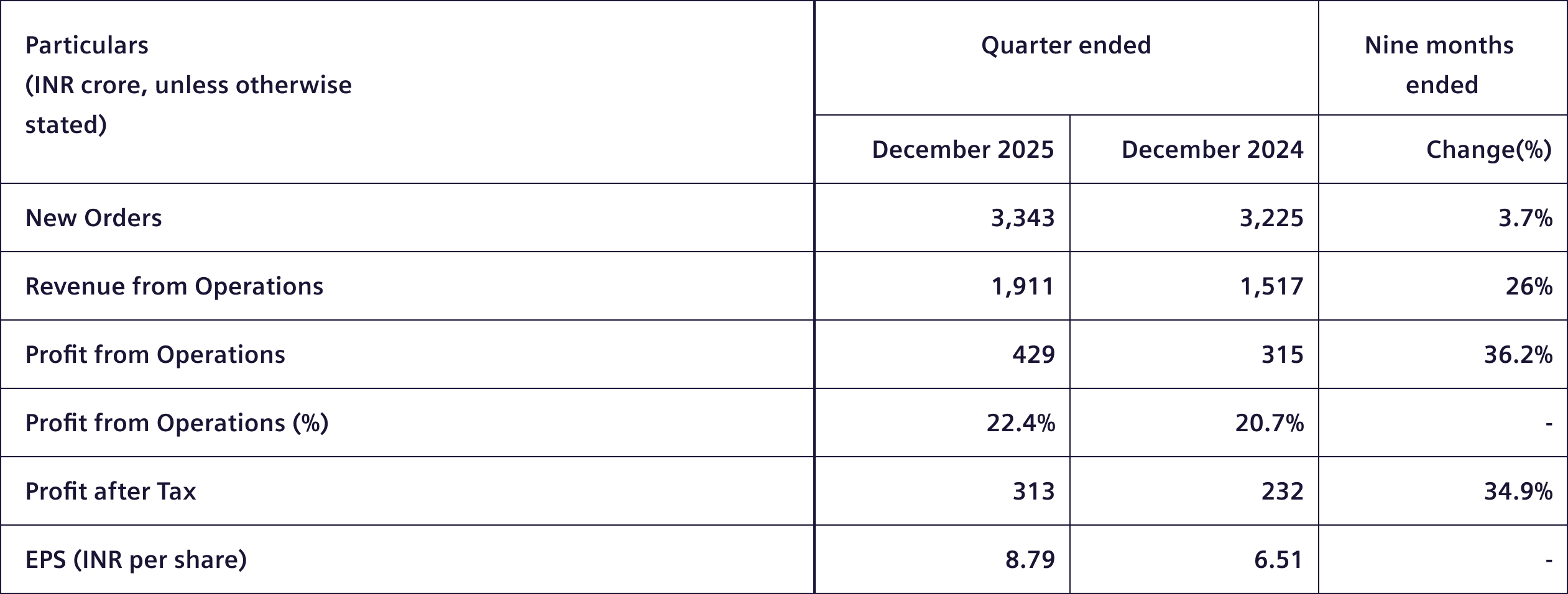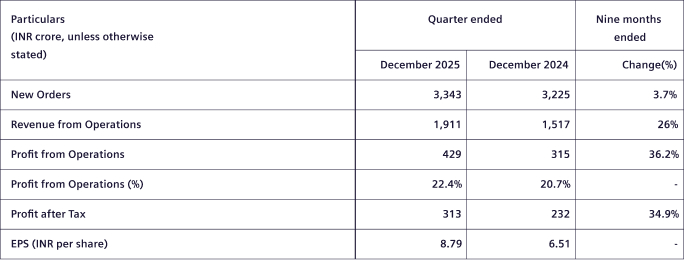 Q1 FY26 profit from operations margin excluding forex and commodity gains was 18.8%, compared to 16.8% in the previous quarter excluding the favorable one-time impact, forex and commodity losses in Q1 FY25. Additionally, the Profit after Tax was impacted by a one-off cost of INR 52 crore on account of implementation of the New Labour Codes announced by the Government on November 21, 2025.